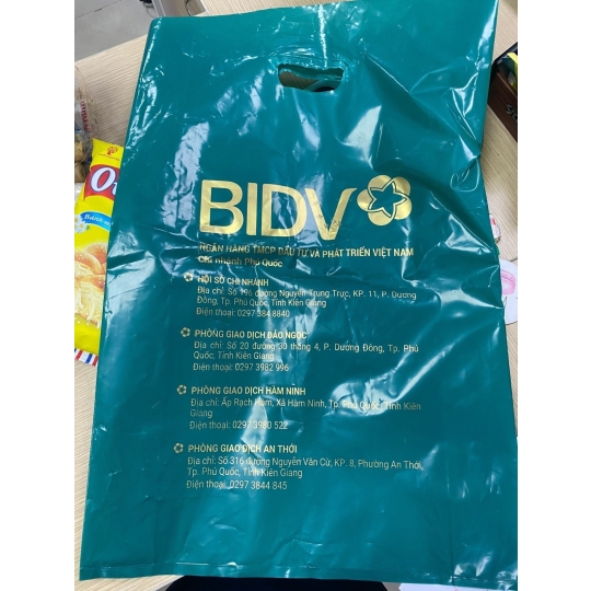 Ngoài ra, trên từng chiếc túi xốp ngân hàng, tên đơn vị ngân hàng, logo và câu slogan của đơn vị luôn là những chi tiết được đầu tư và in ấn ở những vị trí đẹp mắt nhất, nổi bật nhất và thu hút được người nhìn nhất. Những thông tin được in trên thân túi xốp là cách, là phương pháp marketing, giới thiệu dịch vụ, sản phẩm và thương hiệu của đơn vị ngân hàng đến gần hơn với người tiêu dùng, khách hàng hơn.